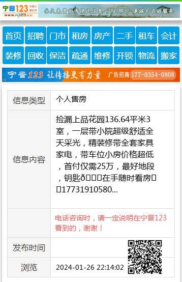 捡漏上品花园136.64平米3室,一层带小院超级舒适全天采光,精装修带全套家具家电,带车位小房价格超低,首付仅需25万,最好地段,钥匙🔑在手随时看房☎️17731910580 【电话咨询时,请一定说明在宁晋123看到的,谢谢!】 |