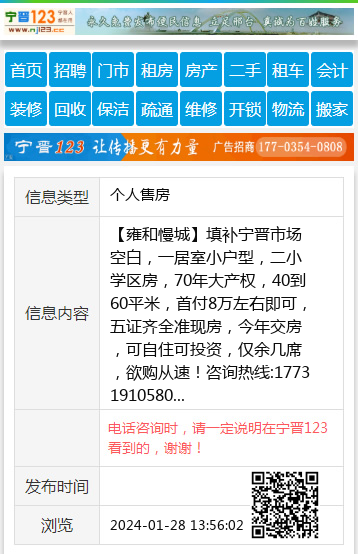 【雍和慢城】填补宁晋市场空白,一居室小户型,二小学区房,70年大产权,40到60平米,首付8万左右即可,五证齐全准现房,今年交房,可自住可投资,仅余几席,欲购从速!咨询热线:17731910580 【电话咨询时,请一定说明在宁晋123看到的,谢谢!】 |