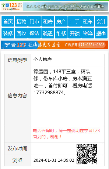 【电话咨询时,请一定说明在宁晋123看到的,谢谢!】