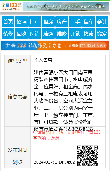 出售富强小区大门口南三层精装商住两门市,水电暖齐全,位置好、租金高。民水民电,一楼有三相电表可用大功率设备,空间大适宜营业。二、三层分别为两室一厅一卫,独立楼宇门、车库。有证可贷款,诚意买价格面谈有意请联系15530928632 【电话咨询时,请一定说明在宁晋123看到的,谢谢!】 |
