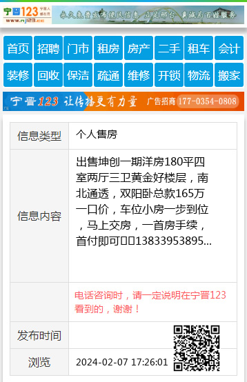 出售坤创一期洋房180平四室两厅三卫黄金好楼层,南北通透,双阳卧总款165万一口价,车位小房一步到位,马上交房,一首房手续,首付即可☎️13833953895 【电话咨询时,请一定说明在宁晋123看到的,谢谢!】 |
