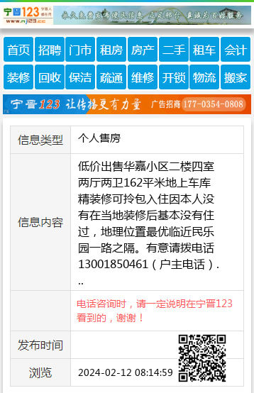 低价出售华嘉小区二楼四室两厅两卫162平米地上车库精装修可拎包入住因本人没有在当地装修后基本没有住过,地理位置最优临近民乐园一路之隔。有意请拨电话13001850461(户主电话) 【电话咨询时,请一定说明在宁晋123看到的,谢谢!】 |