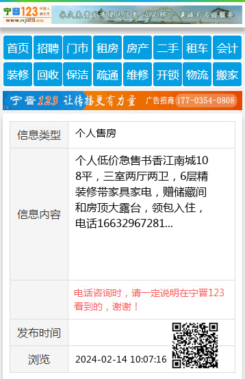 个人低价急售书香江南城108平,三室两厅两卫,6层精装修带家具家电,赠储藏间和房顶大露台,领包入住,电话16632967281 【电话咨询时,请一定说明在宁晋123看到的,谢谢!】 |