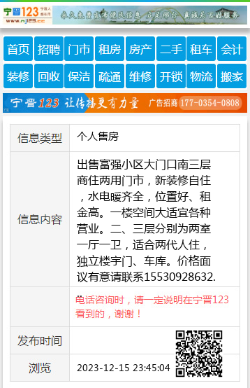 出售富强小区大门口南三层商住两用门市,新装修自住,水电暖齐全,位置好、租金高。一楼空间大适宜各种营业。二、三层分别为两室一厅一卫,适合两代人住,独立楼宇门、车库。价格面议有意请联系15530928632 【电话咨询时,请一定说明在宁晋123看到的,谢谢!】 |