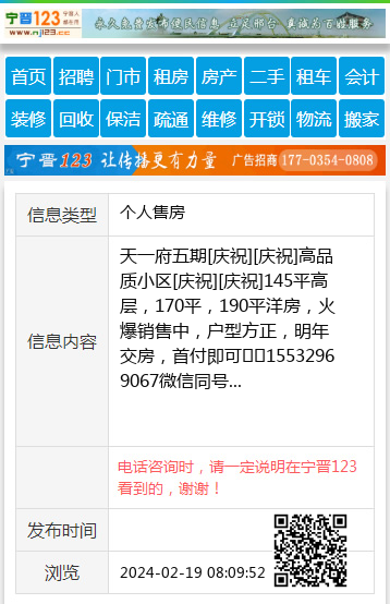 天一府五期[庆祝][庆祝]高品质小区[庆祝][庆祝]145平高层,170平,190平洋房,火爆销售中,户型方正,明年交房,首付即可☎️15532969067微信同号 【电话咨询时,请一定说明在宁晋123看到的,谢谢!】 |