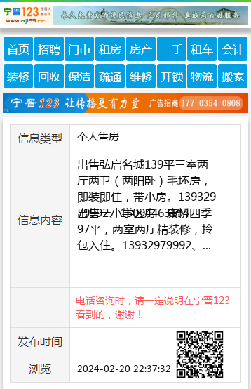 出售一小学区房,康桥四季97平,两室两厅精装修,拎包入住。13932979992、 【电话咨询时,请一定说明在宁晋123看到的,谢谢!】 |