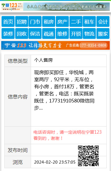 现房即买即住,华悦城,两室两厅,92平米,无车位,有小房,首付18万,管更名,管更名,电话:既买既装既住,17731910580微信同步 【电话咨询时,请一定说明在宁晋123看到的,谢谢!】 |