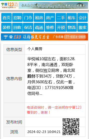 首付不到34万,贷款74万,月供3600左右,仅此一套,电话☎️:17731910580微信同号 【电话咨询时,请一定说明在宁晋123看到的,谢谢!】 |