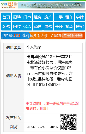 出售华悦城118平米3室2卫南北通透好楼层,毛坯现房,带车位小房总价仅需105万,首付即可直接更名,六中对过最棒地段,看房电话📞18131858126 【电话咨询时,请一定说明在宁晋123看到的,谢谢!】 |