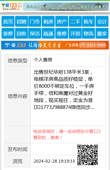 出售世纪华府138平米3室,电梯洋房高品质好楼层,单价8000不绑定车位,一手房手续,信和商厦对过黄金好地段,现买现住,定金为准☎️17732988874微信同步 【电话咨询时,请一定说明在宁晋123看到的,谢谢!】 |