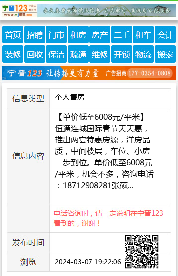 【单价低至6008元/平米】恒通连城国际春节天天惠,推出两套特惠房源,洋房品质,中间楼层,车位、小房一步到位。单价低至6008元/平米,机会不多,咨询电话:18712908281张硕 【电话咨询时,请一定说明在宁晋123看到的,谢谢!】 |
