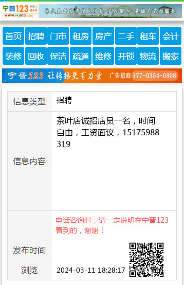 茶叶店诚招店员一名,时间自由,工资面议,15175988319