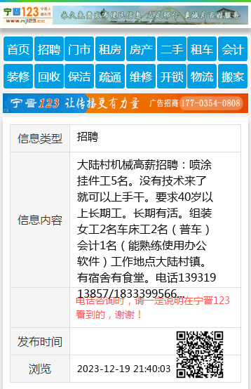| 防骗提醒: | 宁晋123(www.nj123.cc)提醒您:手工活、网络兼职、刷单,都是骗子!凡以各种名义收取费用的都是骗子!找工作是往兜里挣钱,让你往外掏钱的都是骗子!异地招聘请提高警惕,谨防诈骗! |