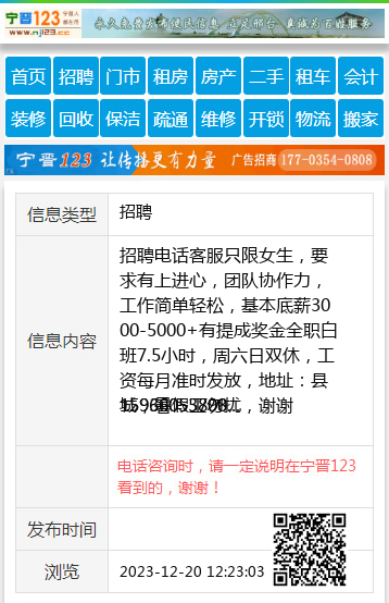 电话咨询时,请一定说明在宁晋123看到的,谢谢!