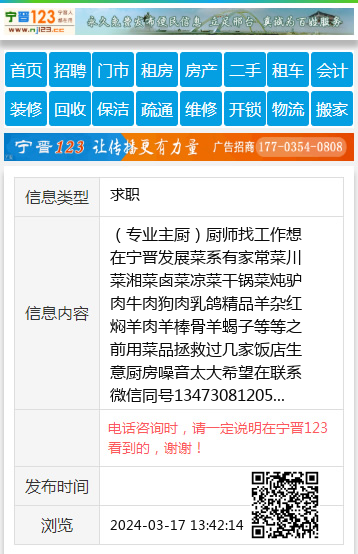 (专业主厨)厨师找工作想在宁晋发展菜系有家常菜川菜湘菜卤菜凉菜干锅菜炖驴肉牛肉狗肉乳鸽精品羊杂红焖羊肉羊棒骨羊蝎子等等之前用菜品拯救过几家饭店生意厨房噪音太大希望在联系微信同号13473081205 【电话咨询时,请一定说明在宁晋123看到的,谢谢!】 |