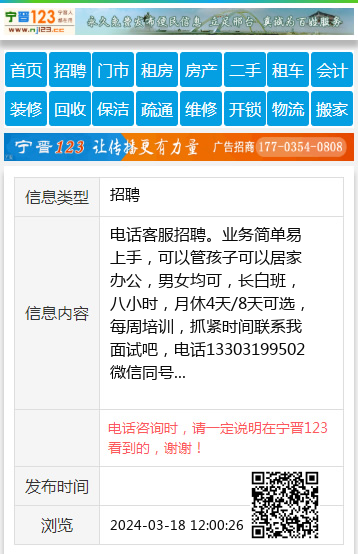 电话客服招聘。业务简单易上手,可以管孩子可以居家办公,男女均可,长白班,八小时,月休4天/8天可选,每周培训,抓紧时间联系我面试吧,电话13303199502微信同号 【电话咨询时,请一定说明在宁晋123看到的,谢谢!】 |