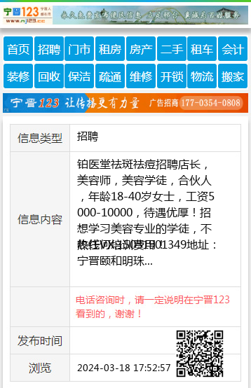 铂医堂祛斑祛痘招聘店长,美容师,美容学徒,合伙人,年龄18-40岁女士,工资5000-10000,待遇优厚!招想学习美容专业的学徒,不收任何培训费用!