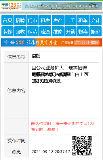 | 防骗提醒: | 宁晋123(www.nj123.cc)提醒您:手工活、网络兼职、刷单,都是骗子!凡以各种名义收取费用的都是骗子!找工作是往兜里挣钱,让你往外掏钱的都是骗子!异地招聘请提高警惕,谨防诈骗! |