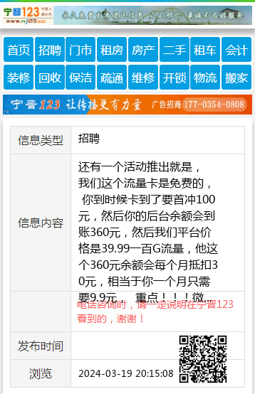 还有一个活动推出就是, 我们这个流量卡是免费的, 你到时候卡到了要首冲100元,然后你的后台余额会到账360元,然后我们平台价格是39.99一百G流量,他这个360元余额会每个月抵扣30元,相当于你一个月只需要9.9元, 重点!!!微信17755132927 【电话咨询时,请一定说明在宁晋123看到的,谢谢!】 |