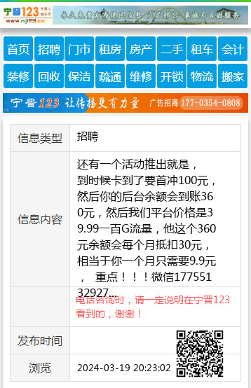 | 防骗提醒: | 宁晋123(www.nj123.cc)提醒您:手工活、网络兼职、刷单,都是骗子!凡以各种名义收取费用的都是骗子!找工作是往兜里挣钱,让你往外掏钱的都是骗子!异地招聘请提高警惕,谨防诈骗! |