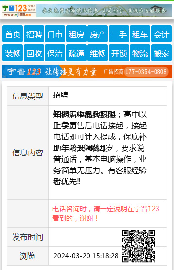 | 防骗提醒: | 宁晋123(www.nj123.cc)提醒您:手工活、网络兼职、刷单,都是骗子!凡以各种名义收取费用的都是骗子!找工作是往兜里挣钱,让你往外掏钱的都是骗子!异地招聘请提高警惕,谨防诈骗! |