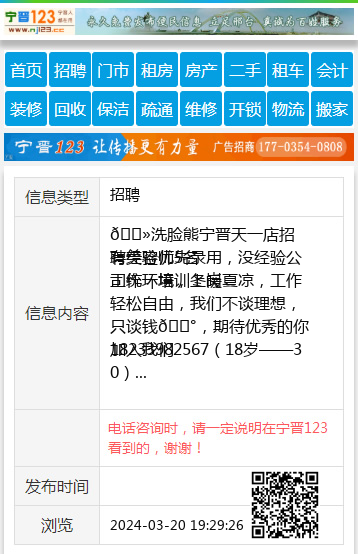 18233982567(18岁——30) 【电话咨询时,请一定说明在宁晋123看到的,谢谢!】 |