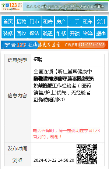 工作地点:宁晋县教师新村小区北门 【电话咨询时,请一定说明在宁晋123看到的,谢谢!】 |
