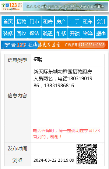 新天际东城幼稚园招聘厨房人员两名,电话18031901986,13831986816