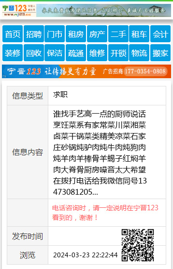 | 防骗提醒: | 宁晋123(www.nj123.cc)提醒您:手工活、网络兼职、刷单,都是骗子!凡以各种名义收取费用的都是骗子!找工作是往兜里挣钱,让你往外掏钱的都是骗子!异地招聘请提高警惕,谨防诈骗! |