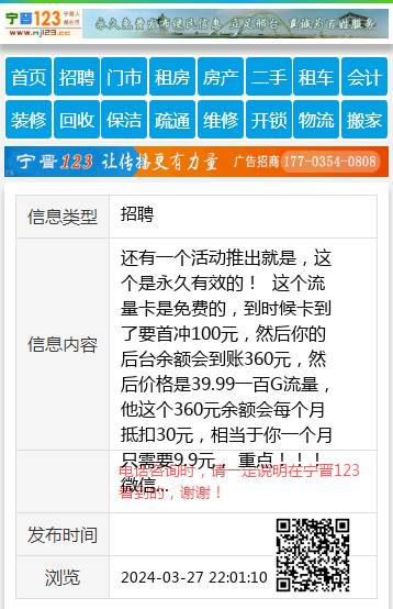 | 防骗提醒: | 宁晋123(www.nj123.cc)提醒您:手工活、网络兼职、刷单,都是骗子!凡以各种名义收取费用的都是骗子!找工作是往兜里挣钱,让你往外掏钱的都是骗子!异地招聘请提高警惕,谨防诈骗! |