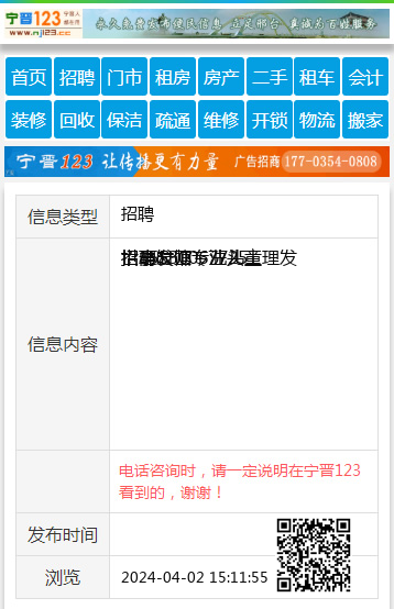 免责声明:本栏目信息由网友自行发布,宁晋123不承担任何责任!提高警惕,谨防诈骗!做推广、做信息置顶!请加宁晋123客服微信:ningjin009