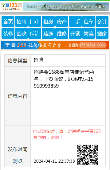 招聘会1688淘宝店铺运营两名,工资面议,联系电话15910993859