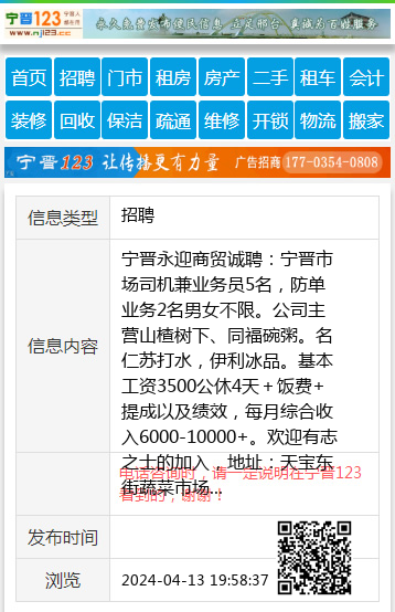 宁晋永迎商贸诚聘:宁晋市场司机兼业务员5名,防单业务2名男女不限。公司主营山楂树下、同福碗粥。名仁苏打水,伊利冰品。基本工资3500公休4天+饭费+提成以及绩效,每月综合收入6000-10000+。欢迎有志之士的加入,地址:天宝东街蔬菜市场北口,电话:15175930450 【电话咨询时,请一定说明在宁晋123看到的,谢谢!】 |