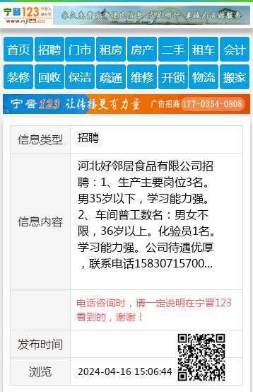 电话咨询时,请一定说明在宁晋123看到的,谢谢!