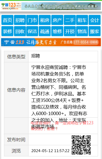 宁晋永迎商贸诚聘:宁晋市场司机兼业务员5名,防单业务2名男女不限。公司主营山楂树下、同福碗粥。名仁苏打水,伊利冰品。基本工资3500公休4天+饭费+提成以及绩效,每月综合收入6000-10000+。欢迎有志之士的加入,地址:天宝东街蔬菜市场北口,电话:15175930450 【电话咨询时,请一定说明在宁晋123看到的,谢谢!】 |