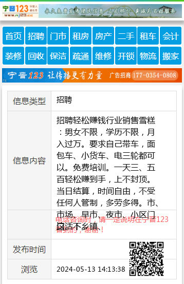 招聘轻松赚钱行业销售雪糕:男女不限,学历不限,月入过万。要求自己带车,面包车、小货车、电三轮都可以。免费培训。一天三、五百轻松赚到手,上不封顶。当日结算,时间自由,不受任何人管制,多劳多得。市、市场、早市、夜市、小区门口、下乡镇、