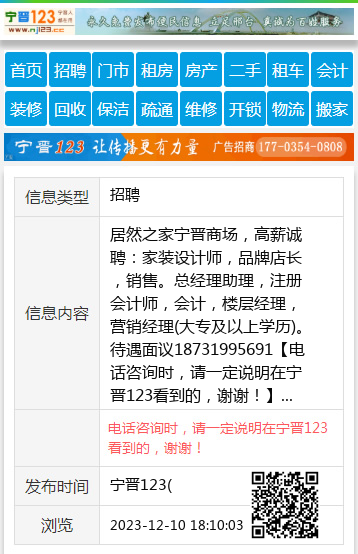 居然之家宁晋商场,高薪诚聘:家装设计师,品牌店长,销售。总经理助理,注册会计师,会计,楼层经理,营销经理(大专及以上学历)。待遇面议18731995691 【电话咨询时,请一定说明在宁晋123看到的,谢谢!】 |