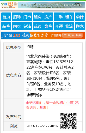 电话咨询时,请一定说明在宁晋123看到的,谢谢!