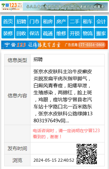 张京水皮肤科主治牛皮癣皮炎脱发扁平疣灰指甲脚气,白殿风青春痘,阳痿早泄,生殖感染,两腮红,脸上斑,鸡眼,痘坑等宁晋县老汽车站十字路口北一百米路东,张京水皮肤科公路绿牌13803197649v同 【电话咨询时,请一定说明在宁晋123看到的,谢谢!】 |