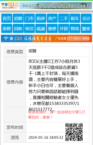 📣主播✅工作7小時月休3天底薪3千➕提成綜合薪資5千-1萬上不封頂,每天播兩場,主要內容簡單好上手,新手小白也可,主要看個人努力只要敢說話都能掙到錢,直播相關經驗者女士優先,水榭花都15383335397/18021517772 【电话咨询时,请一定说明在宁晋123看到的,谢谢!】 |