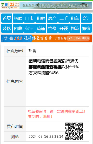 | 防骗提醒: | 宁晋123(www.nj123.cc)提醒您:手工活、网络兼职、刷单,都是骗子!凡以各种名义收取费用的都是骗子!找工作是往兜里挣钱,让你往外掏钱的都是骗子!异地招聘请提高警惕,谨防诈骗! |