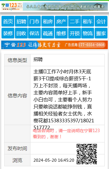 主播✅工作7小时月休3天底薪3千➕提成综合薪资5千-1万上不封顶,每天播两场,主要内容简单好上手,新手小白也可,主要看个人努力只要敢说话都能挣到钱,直播相关经验者女士优先,水榭花都15383335397/18021517772 【电话咨询时,请一定说明在宁晋123看到的,谢谢!】 |
