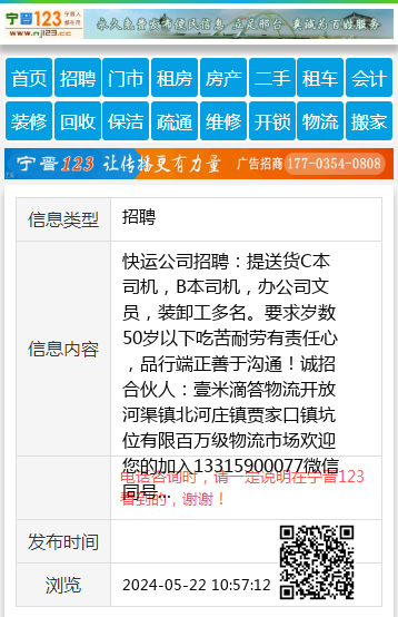 快运公司招聘:提送货C本司机,B本司机,办公司文员,装卸工多名。要求岁数50岁以下吃苦耐劳有责任心,品行端正善于沟通!诚招合伙人:壹米滴答物流开放河渠镇北河庄镇贾家口镇坑位有限百万级物流市场欢迎您的加入13315900077微信同号 【电话咨询时,请一定说明在宁晋123看到的,谢谢!】 |