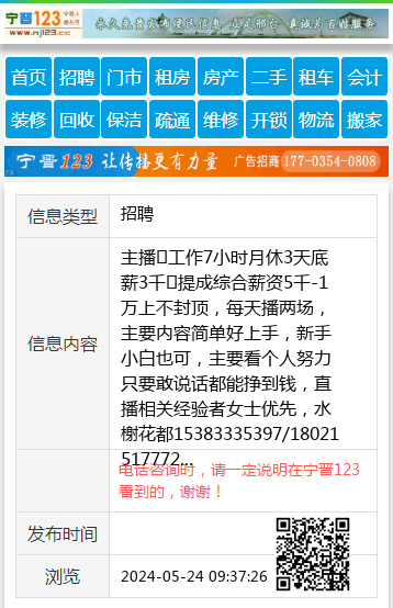 主播✅工作7小时月休3天底薪3千➕提成综合薪资5千-1万上不封顶,每天播两场,主要内容简单好上手,新手小白也可,主要看个人努力只要敢说话都能挣到钱,直播相关经验者女士优先,水榭花都15383335397/18021517772 【电话咨询时,请一定说明在宁晋123看到的,谢谢!】 |