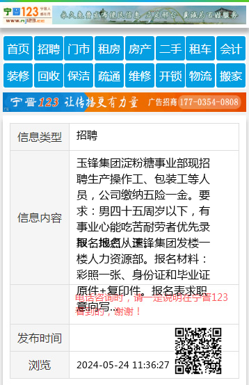 玉锋集团淀粉糖事业部现招聘生产操作工、包装工等人员,公司缴纳五险一金。要求:男四十五周岁以下,有事业心能吃苦耐劳者优先录取,报名从速。