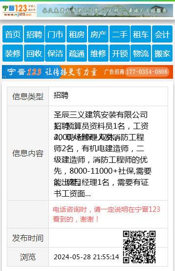 圣辰三义建筑安装有限公司招聘: 1、预算员资料员1名,工资4000+社保+双休。 2、现场管理人员消防工程师2名,有机电建造师,二级建造师,消防工程师的优先,8000-11000+社保,需要能出差。 3、项目经理1名,需要有证书工资面议。 地址:交警队东行200米路北,电话18731999293