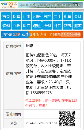 招聘:电话销售20名,每天7小时,均薪5000+,工作比较简单,收入比较稳定,晋升快,有定期聚餐,定期旅游,还有绩效奖励。