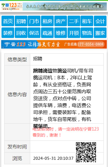 货运司机:B本,2年以上驾龄,有从业资格证,负责网点周边三五十公里范围内取货送货,点对点中转,公司提供车辆,油费,电话费公司承担,需要装卸车,配备地牛,货车自带尾板,有机械辅助。