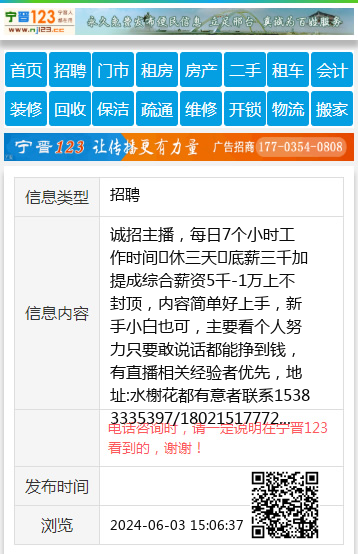 诚招主播,每日7个小时工作时间✅休三天✅底薪三千加提成综合薪资5千-1万上不封顶,内容简单好上手,新手小白也可,主要看个人努力只要敢说话都能挣到钱,有直播相关经验者优先,地址:水榭花都有意者联系15383335397/18021517772 【电话咨询时,请一定说明在宁晋123看到的,谢谢!】 |
