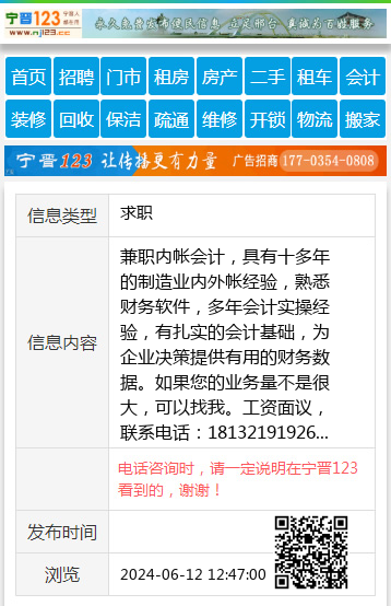 兼职内帐会计,具有十多年的制造业内外帐经验,熟悉财务软件,多年会计实操经验,有扎实的会计基础,为企业决策提供有用的财务数据。如果您的业务量不是很大,可以找我。工资面议,联系电话:18132191926 【电话咨询时,请一定说明在宁晋123看到的,谢谢!】 |
